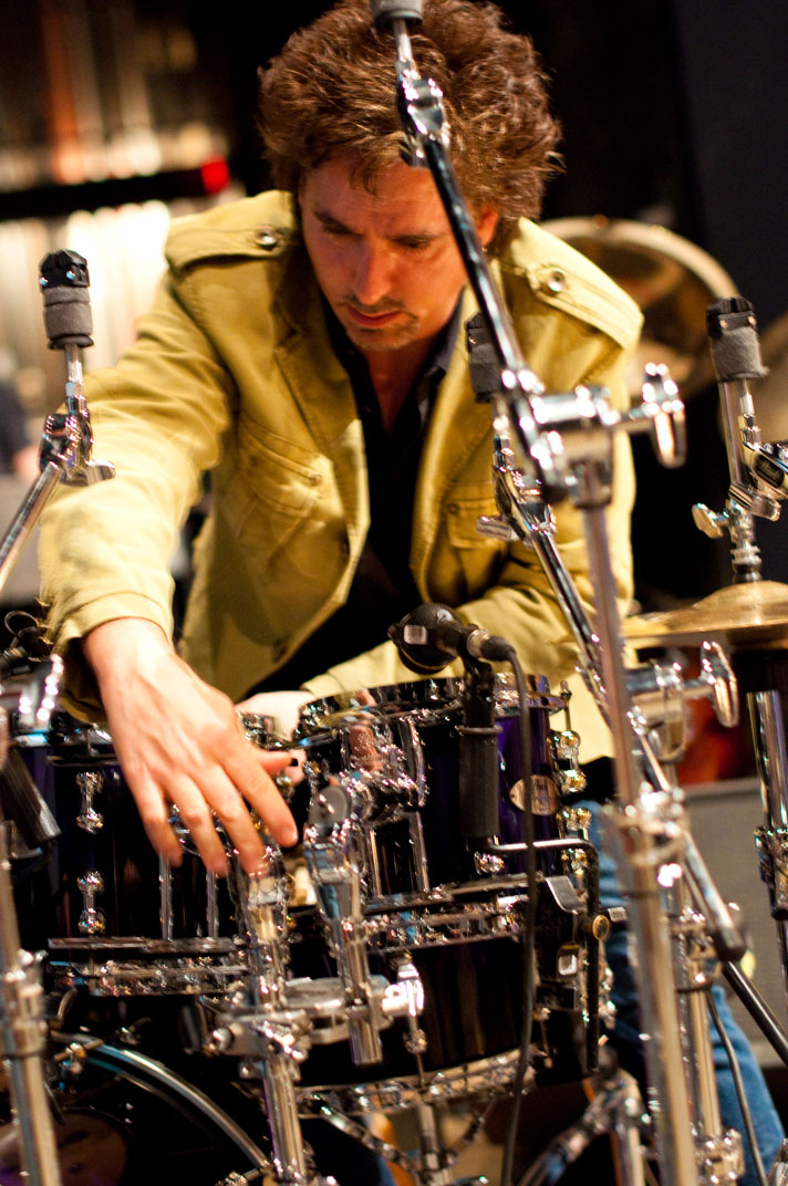 Todd Sucherman adjusts his toms before sound check.