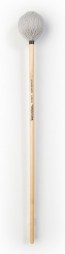 The Tom Rarick Series marimba mallets feature large round cores wrapped with a light grey synthetic wool-blend yarn, while the vibraphone mallets have cord-wrapped large mushroom shaped cores.