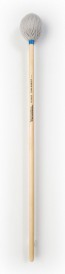 The Tom Rarick Series marimba mallets feature large round cores wrapped with a light grey synthetic wool-blend yarn, while the vibraphone mallets have cord-wrapped large mushroom shaped cores.